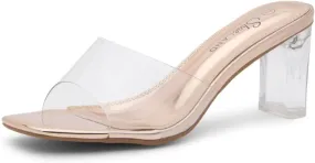 Shoe Land Clear Heels for Women 3 Inch Chunky Heeled Mules, Transparent Slip-On Square Toe Slides | Dressy Clear Sandals for Wedding, Party & Casual Wear